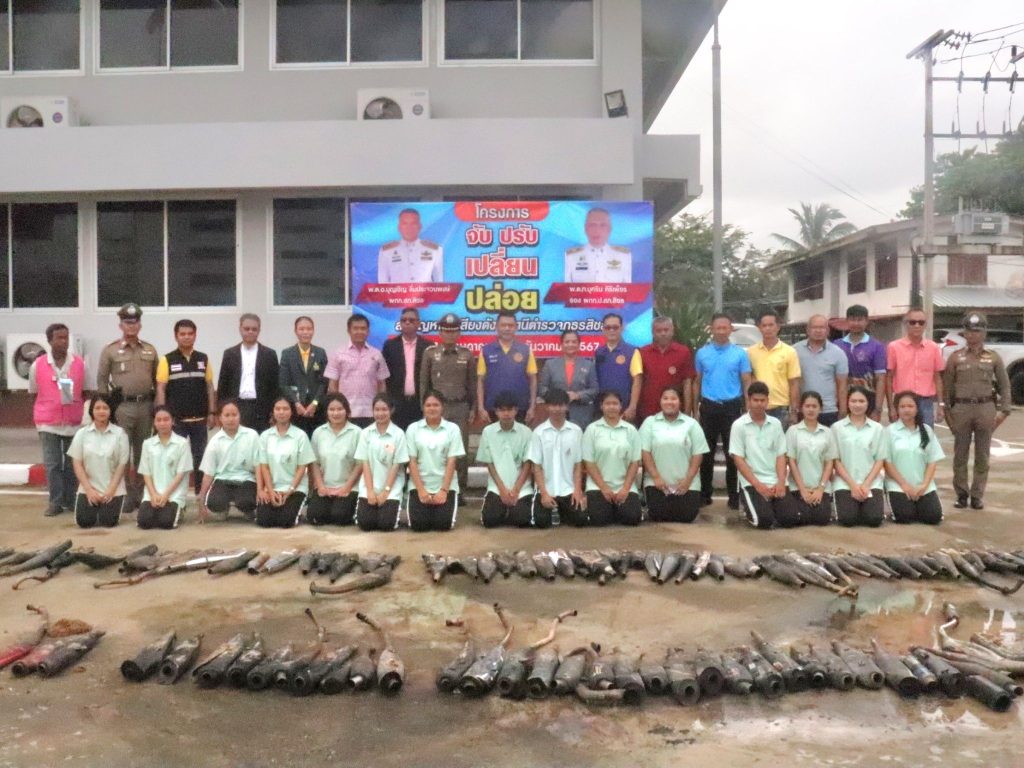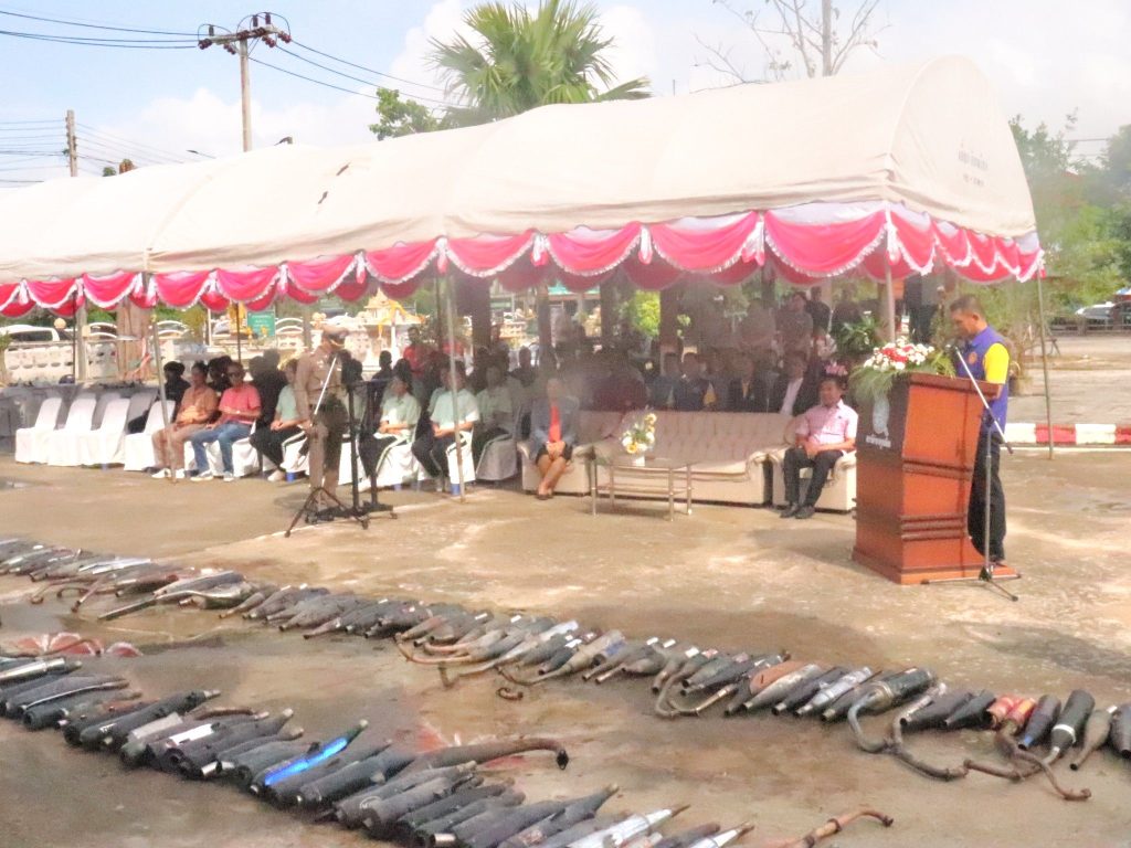 วันที่ 27 กุมภาพันธ์ 2568 เวลา 09.30 น. พ.ต.อ.บุญเชิญ ลิ่มประจวบพงษ์ ผกก.สภ.สิชล พร้อมด้วย พ.ต.ท.บุศริน คีรีเพ็ชร รอง ผกก.ป.สภ.สิชล, พ.ต.ต.เสนีย์ ชมบุญ สวป.(ชส).สภ.สิชล,ข้าราชการตำรวจ สภ.สิชล,คณะ กต.ตร.สภ.สิชล, ผู้อำนวยวิทยาลัยเทคนิคสิชล, ผู้อำนวยการโรงเรียนสิชลคุณาธารวิทยา,ผู้อำนวยการโรงเรียนสิชลประชาสรรค์,นายกเทศมนตรีตำบลสิชล, มูลนิธิเพชรเกษม ได้ร่วมพิธีทำลายท่อไอเสียที่ยึดตามโครงการ “ จับ ปรับ เปลี่ยน ปล่อย ” จำนวน 410 ชิ้น โดยมีนายสมโชค เสนา นายอำเภอสิชล เป็นประธานในพิธี