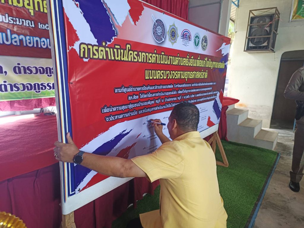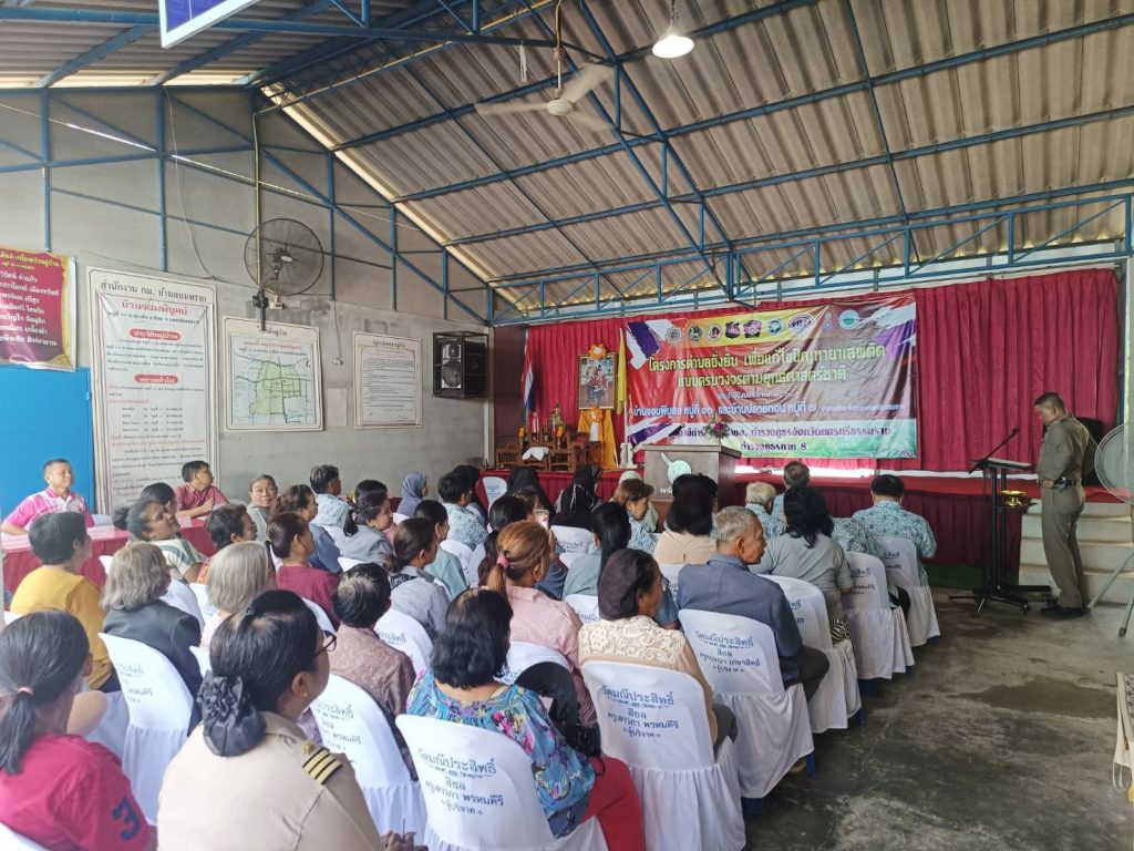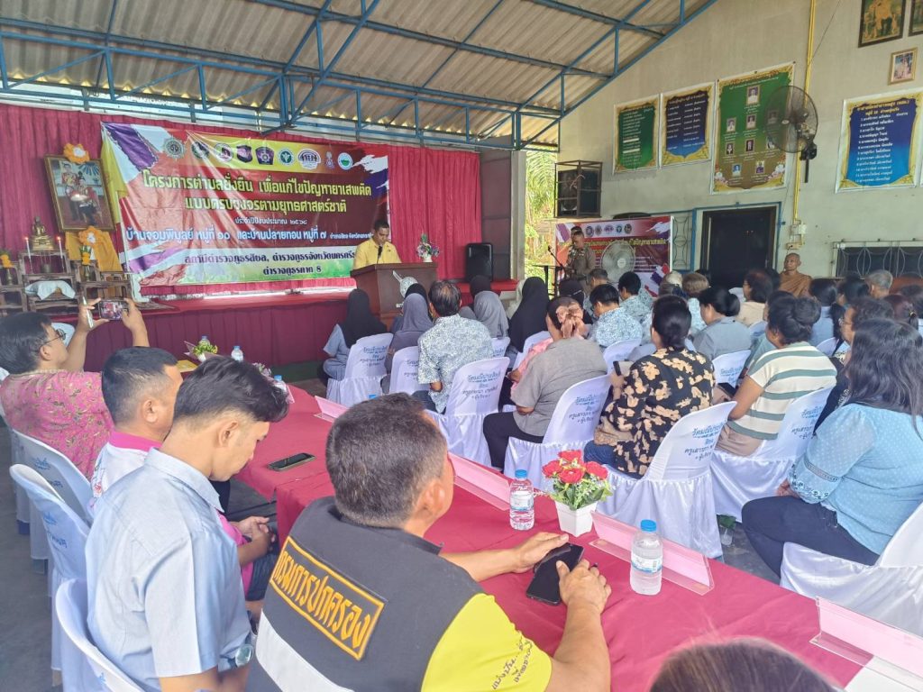 พ.ต.ต.เสนีย์ ชมบุญ สวป.(ชส.) สภ.สิชล หน.ชุดตำบลยั่งยืนฯ พร้อมเจ้าหน้าที่ตำรวจชุดตำบลยั่งยืน พร้อมด้วยพระสงฆ์ซึ่งเป็นที่เลื่อมใสศรัทธาในพื้นที่ ผู้แทน โรงพยาบาลสิชล สาธารณสุขอำเภอสิชล พัฒนาการอำเภอสิชล องค์การบริหารส่วนตำบลทุ่งปรัง โรงพยาบาลส่งเสริมสุขภาพตำบลบ้านจอมพิบูลย์ กำนันตำบลทุ่งปรัง ผู้ใหญ่บ้าน ม.10 และ ม.7 ฝ่ายปกครอง ตำบลทุ่งปรัง ประชาชนในพื้นที่ ได้เข้าร่วมในพิธีเปิดโครงการดำเนินงานตำบลยั่งยืนเพื่อแก้ไขปัญหายาเสพติดแบบครบวงจรตามยุทธศาสตร์ชาติ ประจำปีงบประมาณ พ.ศ.2568 ซึ่ง คัดเลือกหมู่บ้านเป้าหมายบ้านจอมพิบูลย์ หมู่ที่ 10 และ หมู่บ้านปลายทอน หมู่ที่ 7 ตำบลทุ่งปรัง อำเภอสิชล โดยมีนายวีรศักดิ์ บัวศรี นายอำเภอสิชล เป็นประธานในพิธีเปิด ณ หอประชุมหมู่บ้าน หมู่ 10 ต.ทุ่งปรัง อ.สิชล จ.นครศรีธรรมราช