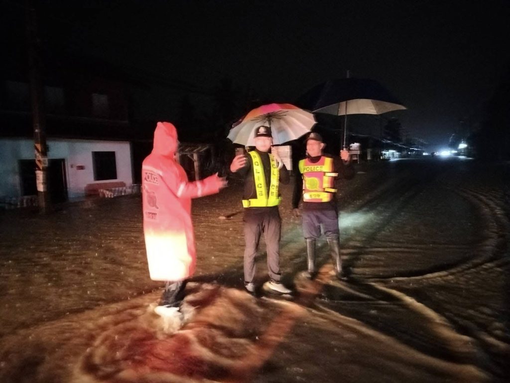 วันที่ 16 ธันวาคม 2567 พ.ต.อ.บุญเชิญ ลิ่มประจวบพงษ์ ผกก.สภ.สิชล , พ.ต.ท.บุศริน คีรีเพ็ชร รอง ผกก.ป.สภ.สิชล , พ.ต.ต.เสนีย์ ชมบุญ สวป (ชส).สภ.สิชล พร้อมกำลังชุดช่วยเหลืออุทกภัย ออกช่วยเหลือผู้ประสบอุทกภัยในพื้นที่ และอำนวยความสะดวกการจราจร ประชาสัมพันธ์ แนะนำเส้นทาง แก่รถที่วิ่งสัญจรไปมาบนถนน เส้นทางที่น้ำท่วมผิวถนน และเส้นทางที่รถไม่สามารถผ่านได้