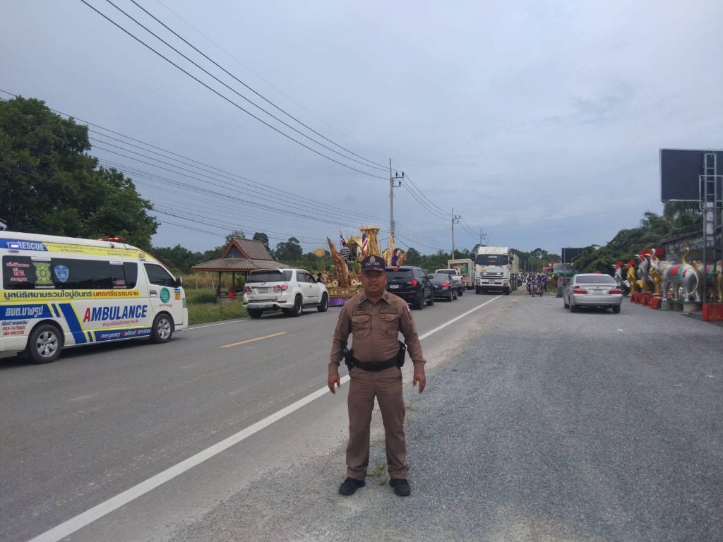 ปล่อยแถวเจ้าหน้าที่จราจร สภ.สิชล ตรวจความพร้อมเครื่องแต่งกาย มอบหมายภารกิจอำนวยความสะดวกการจราจรและกำชับการปฎิบัติต่าง ๆ งานชักพระ อำเภอสิชล ๒๕๖๗ และเจ้าหน้าที่ตำรวจออกปฏิบัติงานอำนวยความสะดวกแก่ขบวนเรือพนมพระ