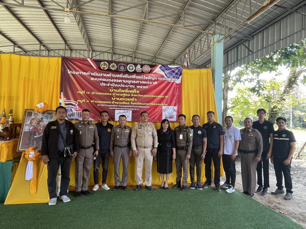สถานีตำรวจภูธรสิชล ได้ทำพิธีเปิด การดำเนินโครงการดำเนินงานตำบลยั่งยืนเพื่อแก้ไขปัญหายาเสพติดแบบครบวงจรตามยุทธศาสตร์ชาติ ของ สภ.สิชล ณ บ้านโพธิ์เสด็จ หมู่ที่ ๗ ต.ฉลอง อ.สิชล จ.นครศรีธรรมราช โดยมีนายวีรศักดิ์ บัวศรี นายอำเภอสิชล เป็นประธานในพิธีเปิด พร้อมด้วย พ.ต.อ.บุญเชิญ ลิ่มประจวบพงษ์ ผกก.สภ. สิชล และชุดปฏิบัติการตำบลยั่งยืน สภ.สิชล พร้อม ได้ลงนามทำข้อตกลงให้ความร่วมมือ (MOU) กับภาคีเครือข่ายในพื้นที่ประกอบด้วย นายวีรศักดิ์ บัวศรี ร่วมลงนามใน MOU หน.ส่วนราชการในพื้นที่ เเละมี อสม.ประชาชนบ้านหมู่ที่ ๗ ประชาชนหมู่ที่ ๘ และชุดปฏิบัติการตำบลยั่งยืน สภ.สิชล ร่วมเป็นสักขีพยานในการประกาศเจตนารมณ์ ว่าจะได้ร่วมปฏิบัติงานในการแก้ไขปัญหายาเสพติดในชุมชนด้วยกัน