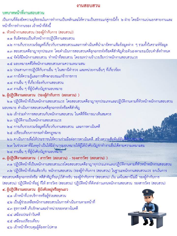 บทบาทภารกิจความรับผิดชอบของแต่ละสายงานภายในสถานีตำรวจภูธรสิชล